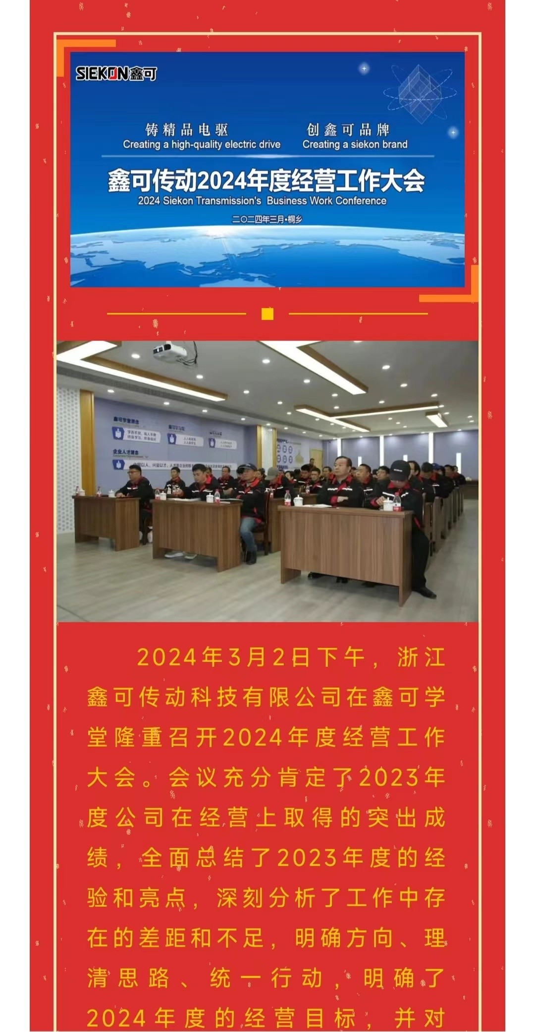 鑄精品電驅 創鑫可品牌丨鑫可傳動2024年度經營工作大會隆重召開 2024-03-05 16:32:24 浙江鑫可傳動科技有限公司 瀏覽次數 1103 鑄精品電驅 創鑫可品牌丨鑫可傳動2024年度經營工作大會隆重召開 上一條女神節快樂! 下一條施如玉副市長一行蒞臨鑫可現場調研