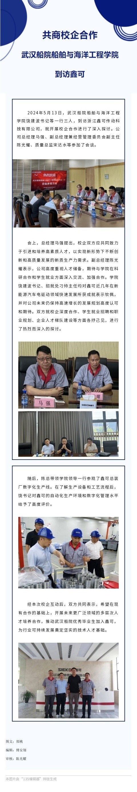 共商校企合作 | 武漢船院船舶與海洋工程學院到訪鑫可 2024-05-31 09:27:12 浙江鑫可傳動科技有限公司 瀏覽次數 1605 上一條鑫可學堂首開法律知識專題講座 下一條開展國際交流合作 開拓鑫可全球市場--印度尼西亞能礦部部長阿里芬·塔斯里夫考察鑫可