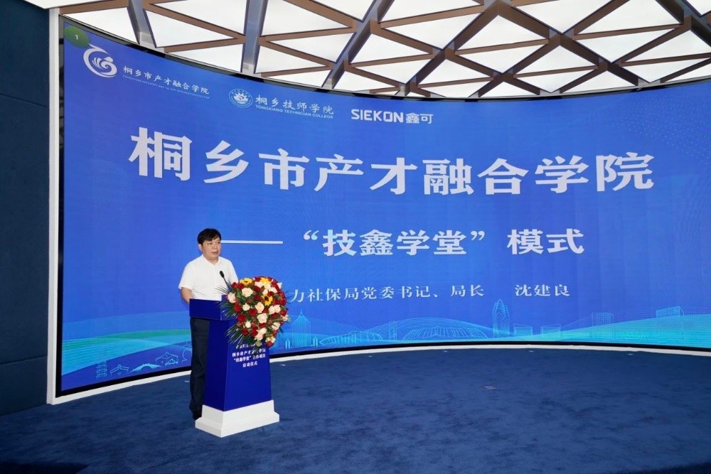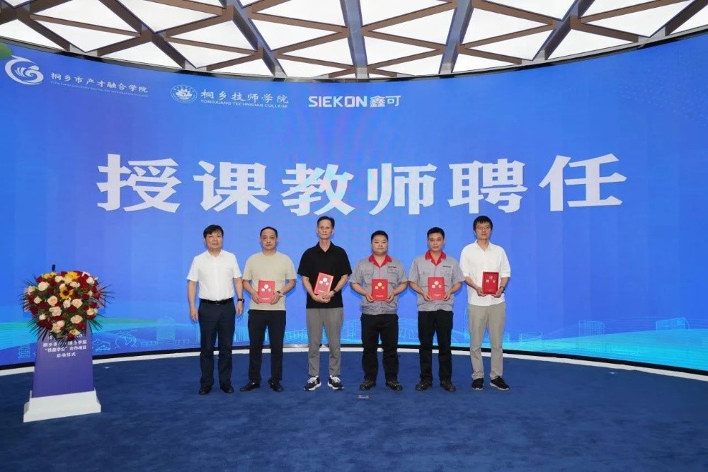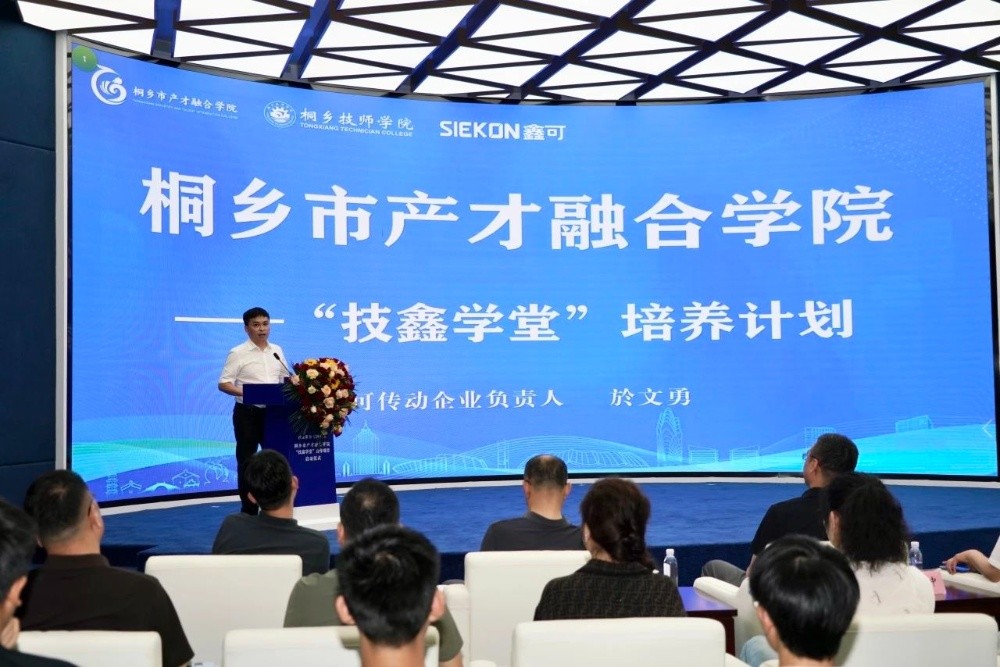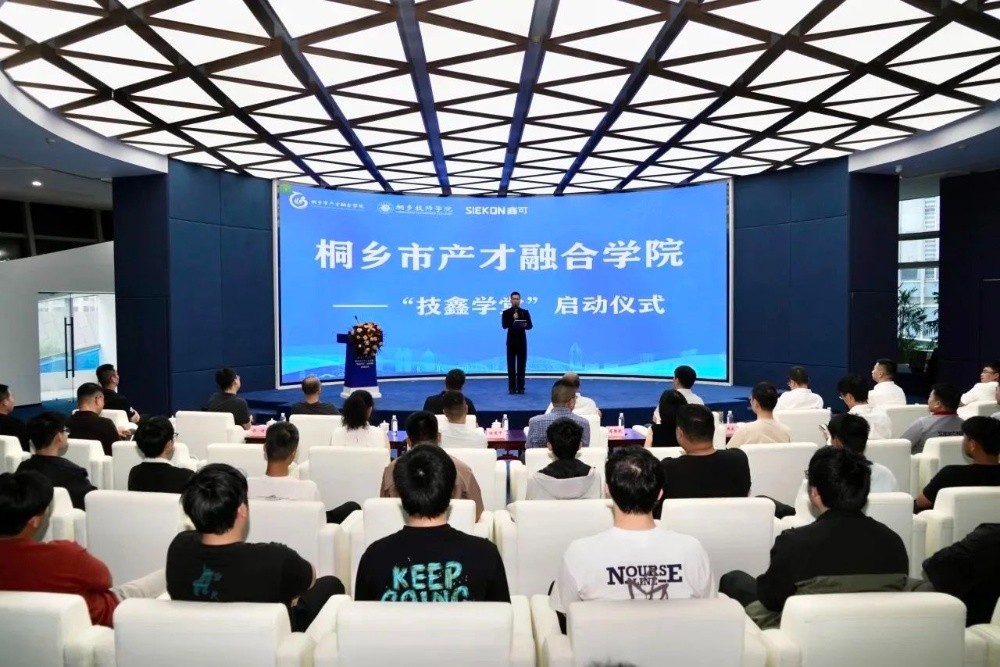 桐鄉市產才融合學院“技鑫學堂”與浙江鑫可傳動科技有限公司、桐鄉技師學院正式啟動。啟動儀式上,三方共同為實訓基地揭牌,標志著“政—產—學—研”深度融合的新篇章開啟。